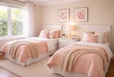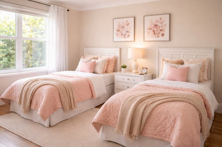 Comfortable shared bedrooms with twin beds designed to provide a clean, peaceful, and restful space for residents to relax and recharge.
